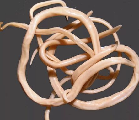 • Askarids - Los gusanos redondos más comunes con una longitud de 20 a 40 cm se parasitan en el intestino delgado, pero pre -migrados en el cuerpo humano, afectando el sistema circulatorio y respiratorio. Junto con los intestinos, estos parásitos se pueden encontrar en el hígado y la vesícula biliar, el corazón y los pulmones. Un síntoma frecuente de ascariasis es una reacción alérgica.